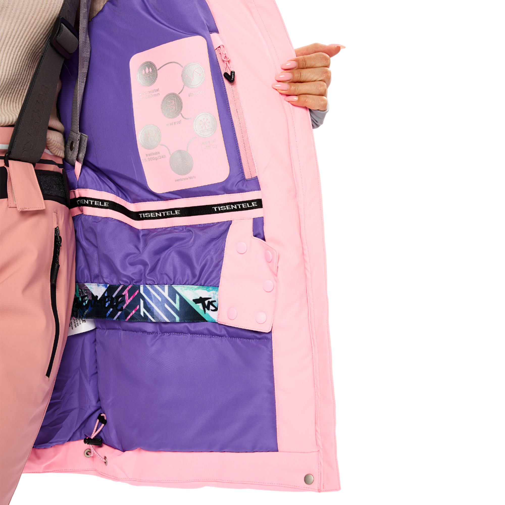 Сноубордическая куртка для женщин фирмы TISENTELE — это идеальное решение для тех, кто хочет наслаждаться зимними прогулками и активным отдыхом в горах. Горнолыжная куртка изготовлена из высококачественных материалов, которые обработаны водоотталкивающими и антибактериальными пропитками, что гарантирует надежную защиту от влаги и холода. Водонепроницаемая мембрана и эргономичный крой не стесняющий движения обеспечивает превосходную защиту одежды от проникновения влаги до 8 часов катания в условиях мокрого снега. Обеспечивает превосходную защиту при мокром снеге или ледяном дожде и оперативно отводит влагу от тела наружу, сохраняя тепло и комфорт. Куртка горнолыжная может быть использована как для повседневной носки, так и для активного отдыха, туризма, прогулок. Куртка для горных лыж и сноубординга.Особенности и характеристики:
